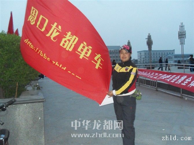 4月18日傍晚,一名網(wǎng)友把“周口龍都單車”旗幟插在五一廣場,為祈?;顒?dòng)布置場地。