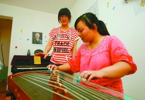 為了工作上的應酬,不少白領到專業(yè)的音樂教室學習彈古箏。 記者 吳子敬 攝