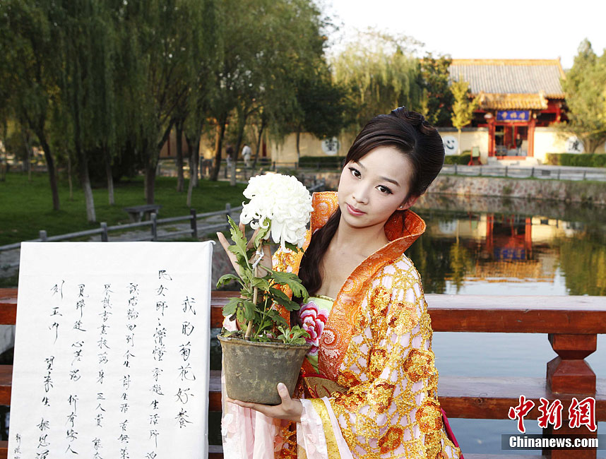 10月17日,河南開封菊花展清明上河園,景區(qū)熙攘的人群中,一名自稱“李師師”的女子,倚坐清明上河園橋頭標(biāo)價萬元賣菊花,引起上百游人圍觀,其后輾轉(zhuǎn)上善門附近更因人員擁擠導(dǎo)致場面一度失控。此女子還現(xiàn)場展示舞技,以證明是宋朝穿越的“李師師”身份的真實性,其優(yōu)美的舞姿贏得在場游客熱烈掌聲。當(dāng)有游客問該女子菊花售價過高的問題時,該女子僅回答“我的菊花好養(yǎng),隨我從大宋穿越至今仍盛開不敗,生活所迫,故忍痛割愛?!焙蟊悴辉倩貞?yīng)。她只是希望好心人能能夠救她,使她求得穿越之術(shù)返回宋朝。王中舉