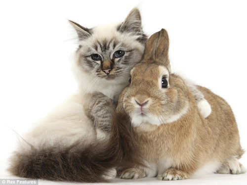 據(jù)外媒16日報道,攝影師馬克·泰勒近日發(fā)布了一組寵物照片,照片中不同物種的小動物們不僅和諧相處,還非常親密。其中,貓咪和兔子“稱兄道弟”,兩只兔子在親密接吻,還有一只小狗竟突然偷襲它的貓朋友——狠狠地親了上去。