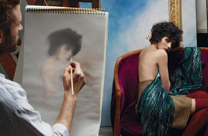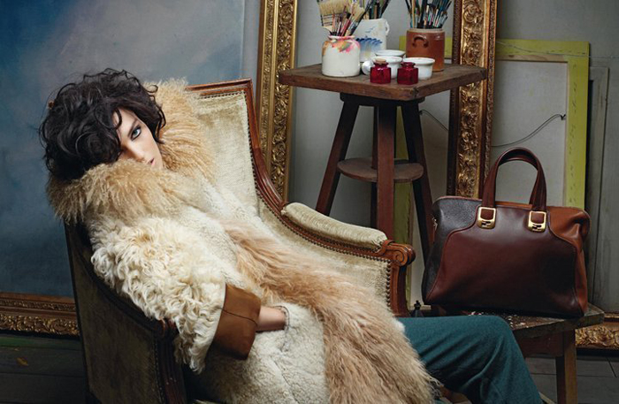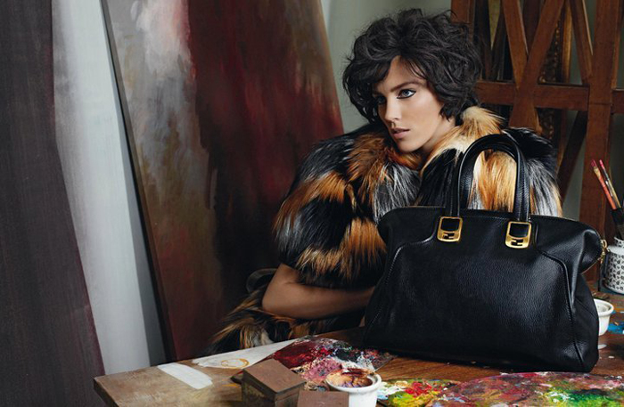 Fendi 2011秋冬廣告大片正式出爐,延續(xù)著品牌廣告一向由老佛爺Karl Lagerfeld掌鏡的傳統(tǒng),超模Anja Rubik仿佛人體模特置身于畫室中,優(yōu)雅又散發(fā)著魅惑性感的味道,整體畫面充滿了油畫版的美感。
