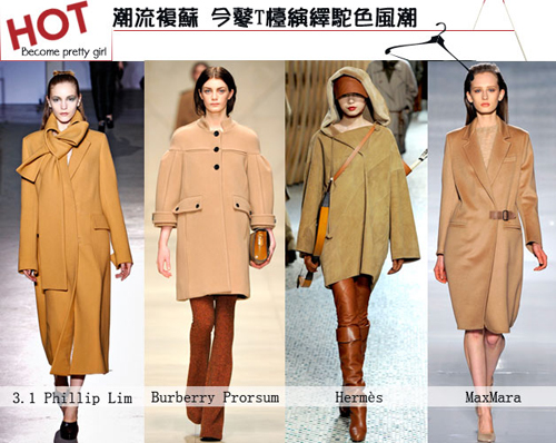 優(yōu)雅、奢華、大氣的大地色調(diào)橫掃各大秀場。Phillip Lin、BurberryProrsum、Hermes、MaxMara等大牌時裝秀場上我們都看到了駝色大衣的身影。各個深淺層次不一的駝色系看起來都是那么的惹人喜愛