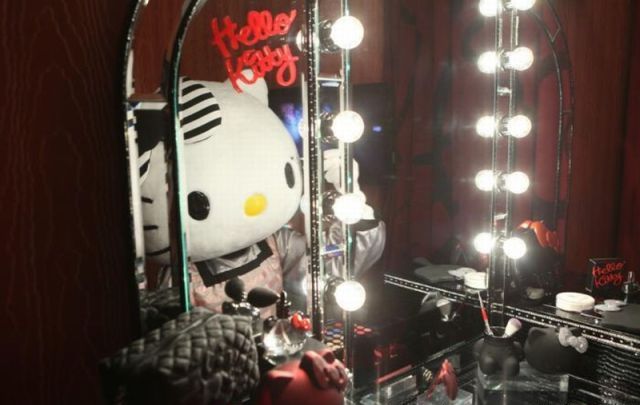 該套房的另一大特色,就是擺在房間梳妝臺(tái)上的那些超萌的高檔彩妝產(chǎn)品及用具。Hello Kitty加美妝,有多少女孩能hold住呢