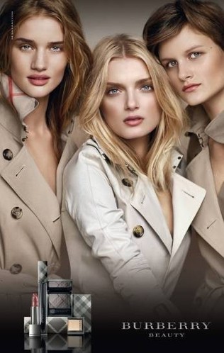 BURBERRY Beauty的廣告,由著名攝影師Mario Testino,在Christopher Bailey的指導(dǎo)下于倫敦拍攝,而模特兒是來自英國(guó)的Rosie Huntington-Whiteley、Nina Porter和Lily Donaldson