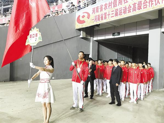 昨日20時(shí),河南省第十三屆運(yùn)動(dòng)會(huì)開(kāi)幕式在市體育中心體育場(chǎng)拉開(kāi)帷幕。在開(kāi)幕式現(xiàn)場(chǎng),武警戰(zhàn)士高舉國(guó)旗邁著堅(jiān)實(shí)整齊的步伐走在第一方陣,當(dāng)武警戰(zhàn)士走過(guò)主席臺(tái)后,各代表團(tuán)陸續(xù)入場(chǎng)。作為東道主,周口市代表團(tuán)最后一個(gè)步入體育場(chǎng),旗手是全國(guó)跆拳道冠軍樊海青。