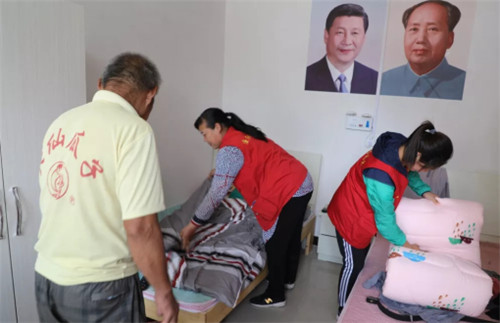 當(dāng)天,志愿者服務(wù)隊員們走進(jìn)敬老院,噓寒問暖,像對待自己的親人一樣對待每一位老人。有的幫老人打掃室內(nèi)衛(wèi)生,為他們鋪床疊被。心細(xì)的姑娘掏出自己的梳子給老人梳頭發(fā)后,又剪指甲,讓老人高興得合不攏嘴。
