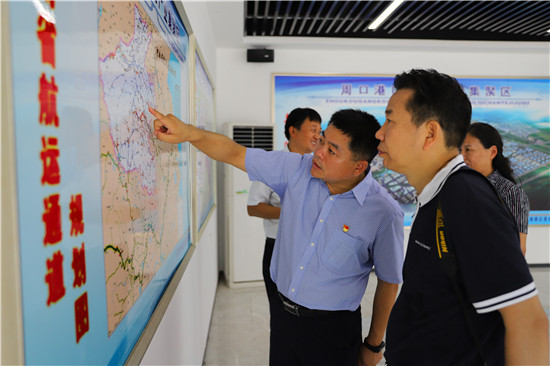 在周口中心港碼頭,周口港區(qū)黨委書記孫紅偉向顧立林一行表示歡迎,孫紅偉向來賓介紹了周口港區(qū)的整體規(guī)劃、中心港碼頭的建設運營情況和港區(qū)未來的發(fā)展前景,針對新華社河南分社記者在采訪中提出的問題,進行詳細解答。隨后,顧立林一行觀看了《以港促城》宣傳片,并登上貨船,實地采訪船民。