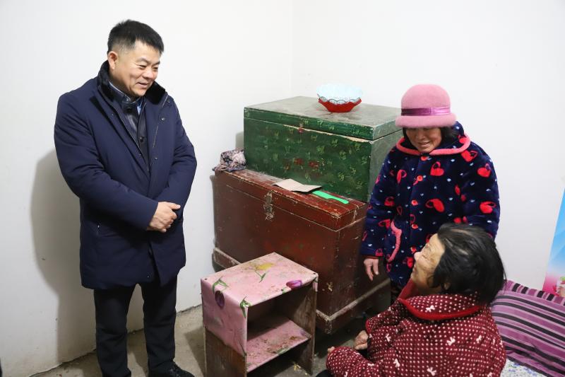 困難戶吳秀榮,今年90歲,老伴和三個兒子都分別因病去世,老人行動不便,家境困難,日常生活由兒媳婦照顧。孫紅偉來到老人床前,握著老人的手,詢問老人身體狀況,生活情況。吳秀榮非常高興,說媳婦照顧得好,平時政府和小區(qū)物業(yè)對她都很照顧,她非常感謝黨和政府的關(guān)心和幫助。孫紅偉向吳秀榮表達(dá)新春祝福,祝愿老人安度晚年。