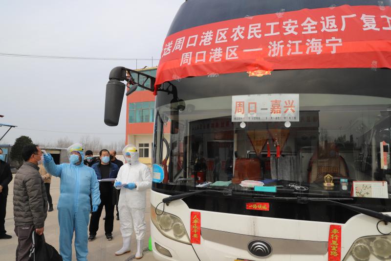2月20日下午,24名農(nóng)民工從港區(qū)汽車站上車,8個小時后,他們將直接到達(dá)位于浙江海寧市的一家企業(yè)廠區(qū)。疫情防控期間,為方便居民外出務(wù)工,避免旅途過程中的交叉感染,周口港區(qū)采用“點(diǎn)對點(diǎn)”的形式,組織車輛幫助農(nóng)民工返崗。發(fā)車前,港區(qū)管委會主任程若光攜食品、飲料到場為司乘人員送行,并叮囑他們旅途中做好安全防護(hù)。