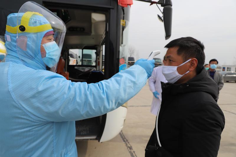 2月20日下午,24名農(nóng)民工到達(dá)港區(qū)汽車站,一輛經(jīng)過消毒后的59座大巴車已經(jīng)??吭谡军c(diǎn)。人員進(jìn)站、上車前由港區(qū)醫(yī)護(hù)醫(yī)護(hù)人員為他們進(jìn)行登記測量體溫。周口港區(qū)交通分局局長王應(yīng)選介紹,接到任務(wù)后,交通分局與港區(qū)人社局、港區(qū)衛(wèi)生部門聯(lián)系,做好外出務(wù)工人員返崗消毒防疫的準(zhǔn)備,同時,協(xié)調(diào)川匯區(qū),派出車況性能好、司乘人員素質(zhì)高的客運(yùn)車輛服務(wù)本次客運(yùn)。車站負(fù)責(zé)人苑本領(lǐng)介紹,為避免乘客之間相互感染,本班客車將嚴(yán)格按照疫情防控要求,將客座率控制在50%以內(nèi),汽車雙排座椅每排只能坐一名乘客,最后兩排作為隔離區(qū),不坐乘客。