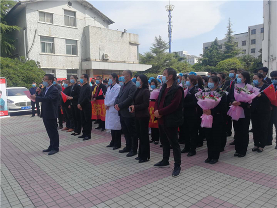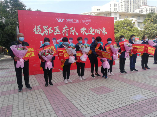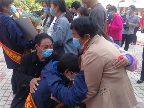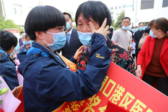 “送給你小心心,送你花一朵“在歡迎人員的手語(yǔ)舞的伴隨下,8位港區(qū)醫(yī)院援鄂醫(yī)療隊(duì)員和一位司機(jī)走出周口迎賓館解除隔離。4月1日,周口港區(qū)醫(yī)院援鄂醫(yī)療隊(duì)圓滿完成任務(wù)返回周口,在周口迎賓館隔離14天,4月15日下午,隔離期滿,隊(duì)員們經(jīng)兩次核酸檢測(cè)呈陰性,達(dá)到了解除醫(yī)學(xué)觀察標(biāo)準(zhǔn)。