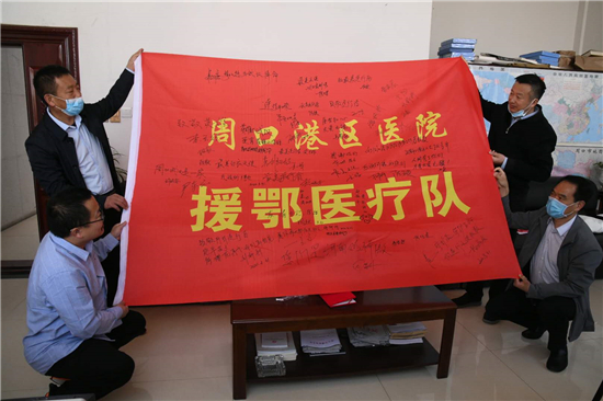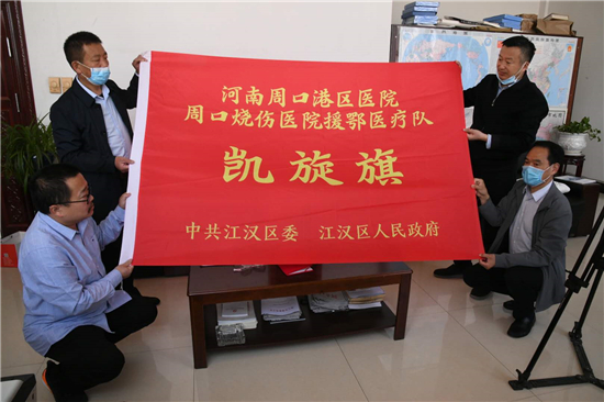 在武漢抗疫期間,周口港區(qū)醫(yī)院作為我市第三批援鄂梯隊,由港區(qū)醫(yī)院院長賀志勇、麻醉科副主任醫(yī)師高年資,檢驗科檢驗師王記、內(nèi)科醫(yī)師尹東云、中西醫(yī)結合醫(yī)生田超、急診科的護士石愷麗、護士孫美清、許聽聽、鄭艷平,組成的周口援鄂醫(yī)療隊,于3月3日上午出發(fā)馳援武漢,進駐武漢商職醫(yī)院,開展新冠肺炎患者的救治和護理工作,在援鄂的29個日夜,他們和死神搏斗,搶救病人,用精湛的醫(yī)術和職業(yè)精神,贏得武漢各界的贊譽。