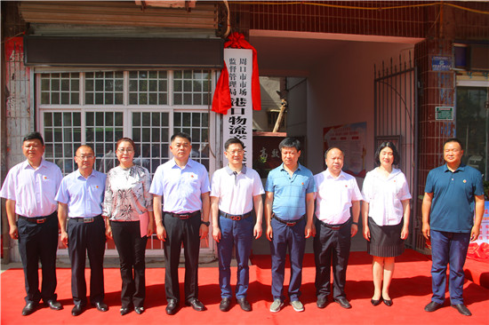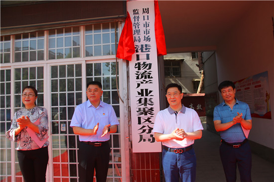 在新聞媒體和分局全體干部職工的見證下,孫紅偉、時乃立、干在慎、李素芹為周口市市場監(jiān)督管理局港區(qū)分局揭牌。