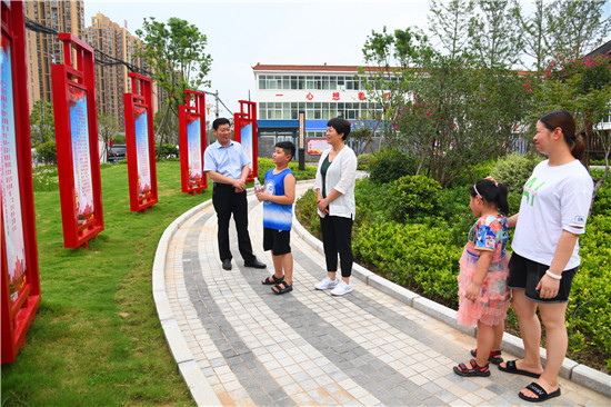 8月5日,市民在商水縣城關(guān)鄉(xiāng)新時代文明實踐廣場游玩。
