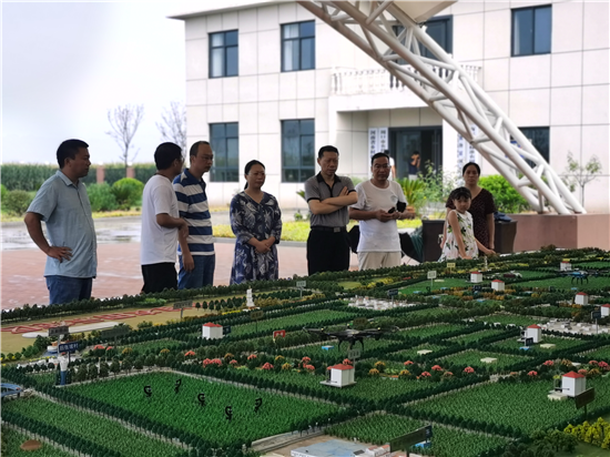 在商水縣高標(biāo)準(zhǔn)農(nóng)田示范區(qū)管理中心,劉勇一行認真聽取縣農(nóng)業(yè)局有關(guān)負責(zé)人關(guān)于商水縣高標(biāo)準(zhǔn)農(nóng)田建設(shè)暨高效節(jié)水灌溉示范工作開展情況介紹,現(xiàn)場觀看了商水縣高標(biāo)準(zhǔn)農(nóng)田建設(shè)工作專題片。劉勇認為商水深入推進國家“藏糧于地、藏糧于技”戰(zhàn)略,堅持以科技興農(nóng)助力鄉(xiāng)村振興,在高標(biāo)準(zhǔn)農(nóng)田和高效節(jié)水灌溉示范區(qū)建設(shè)工作中規(guī)劃起點高、建設(shè)標(biāo)準(zhǔn)高,提高了農(nóng)業(yè)綜合效益,樹立了標(biāo)桿、打造了樣板,此種工作思路和做法值得學(xué)習(xí)借鑒。他表示,將組織全市的書畫家把商水縣高標(biāo)準(zhǔn)農(nóng)田的壯麗景觀描繪下來,讓我們家鄉(xiāng)的美景和農(nóng)業(yè)現(xiàn)代化巨大成就以更加直觀的形式展現(xiàn)在全省、全國的人民面前,從而進一步提高商水、周口的知名度和美譽度。