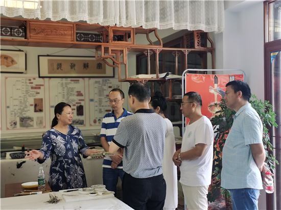 隨后,劉勇一行來到位于商水縣新城街道辦事處的商水縣書法家協(xié)會活動基地——黃莊居委會黨群服務(wù)中心“國寶進萬家活動基地”進行參觀,聽取了該基地負責(zé)人呂志華對美術(shù)創(chuàng)作和人才培訓(xùn)有關(guān)情況的匯報。他指出:一定要發(fā)揮河南省書法之鄉(xiāng)的優(yōu)勢,讓更多的人了解、認識中國優(yōu)秀傳統(tǒng)文化,進而學(xué)習(xí)傳統(tǒng)書畫,源源不斷地培育出更多的書畫人才和后起之秀。同時要積極創(chuàng)作好、準(zhǔn)備好“周口美術(shù)進京展”的參展美術(shù)作品,不斷推出有周口特色、周口風(fēng)格、周口氣派的精品力作,為繪就中原更加出彩周口特色添彩畫卷提供強大精神動力、營造良好的文化氛圍。