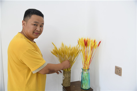 8月18日中午,商水縣譚莊鎮(zhèn)三李村村民正在演示染色小麥秸稈室內(nèi)裝飾藝術(shù)。