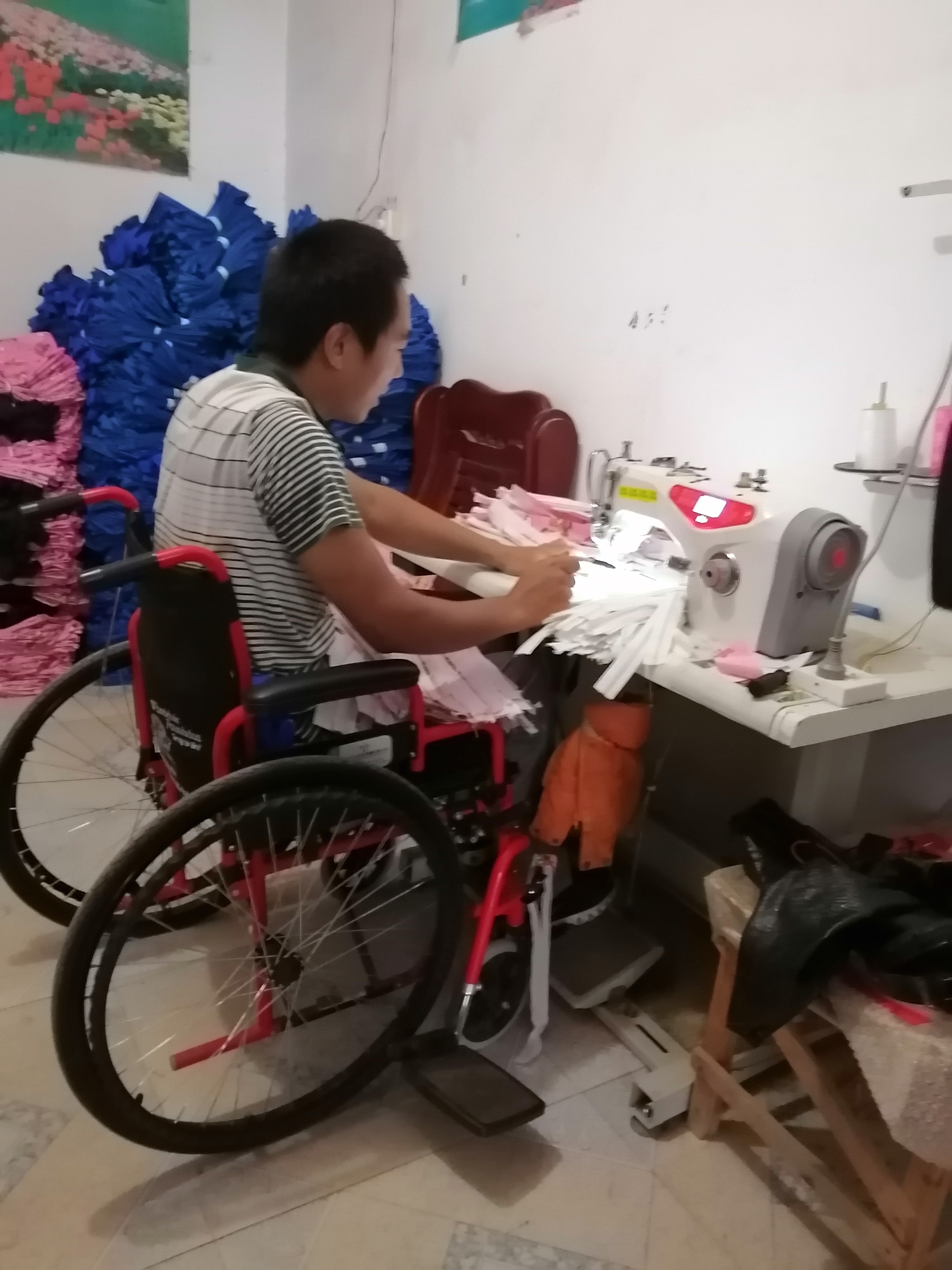 為克服困難,他嘗試改裝,經(jīng)過多次試驗,終于把縫紉機腳踏板改成了手動式控制,用手操作,大大提高了效率,二人一個月又增加了1000元左右的收入,還能顧家和照顧孩子,