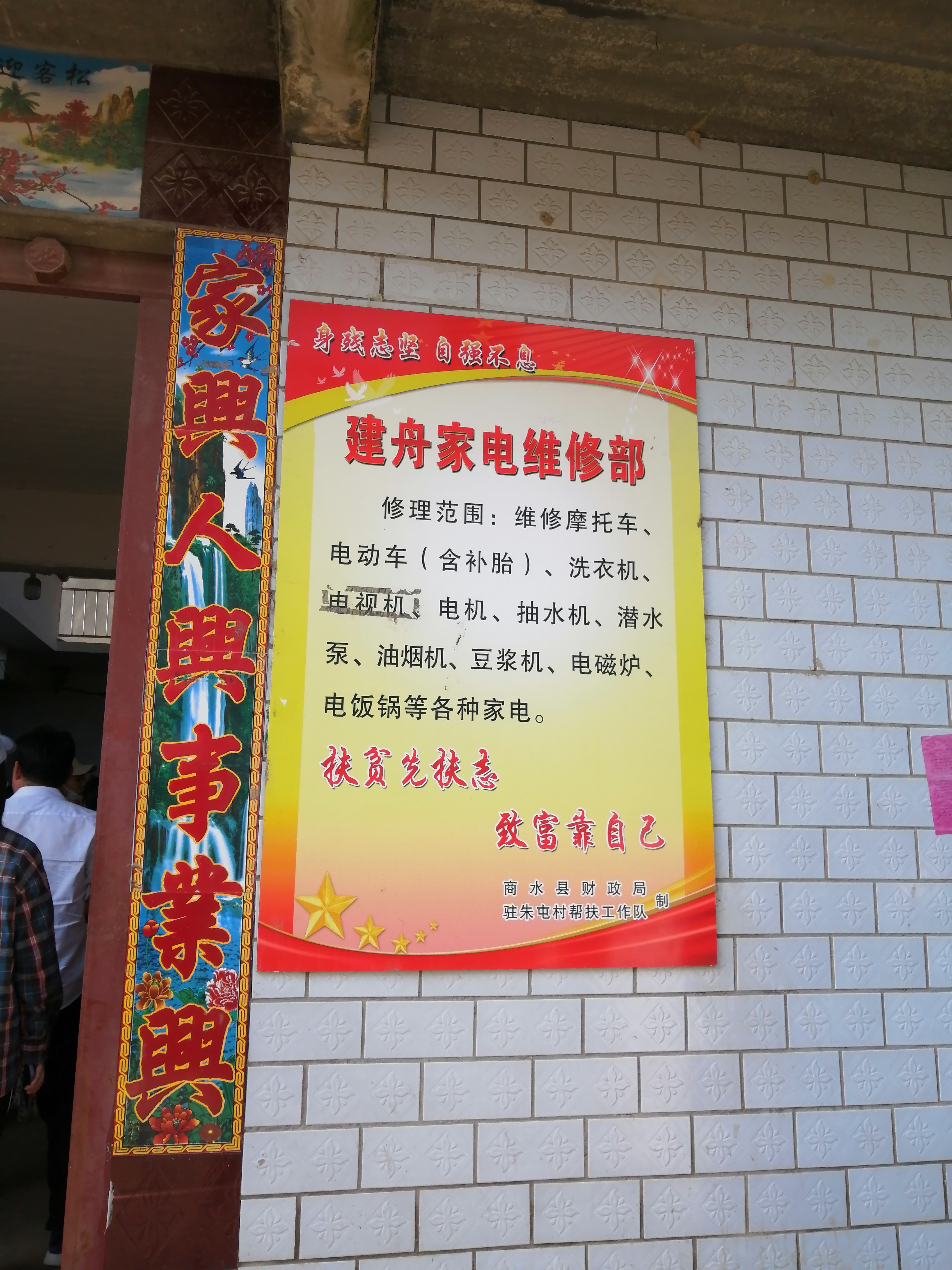 同時,袁老鄉(xiāng)朱屯村鄉(xiāng)村干部和縣財政局駐村工作隊了解到朱建舟在上職高時學過家電和機械維修技術(shù),他們多次到朱建舟家里做他的思想工作,給他打起,讓他開個修理鋪。2016年8月,在他們的鼓勵和幫扶下,朱建舟嘗試開起了家電和電動車修理鋪。