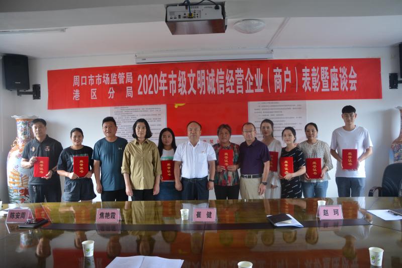 為進(jìn)一步強(qiáng)化市場(chǎng)主體文明經(jīng)營(yíng)、誠(chéng)信經(jīng)營(yíng)、合法經(jīng)營(yíng)的理念,助力全國(guó)文明城市提名城市創(chuàng)建工作,9月16日下午,周口市市場(chǎng)監(jiān)管局港區(qū)分局召開(kāi)表彰2019年度全市“文明誠(chéng)信企業(yè)、文明誠(chéng)信商戶(hù)”暨座談會(huì),對(duì)轄區(qū)2家市級(jí)“文明誠(chéng)信企業(yè)”和8家市級(jí)“文明誠(chéng)信商戶(hù)”進(jìn)行表彰。
