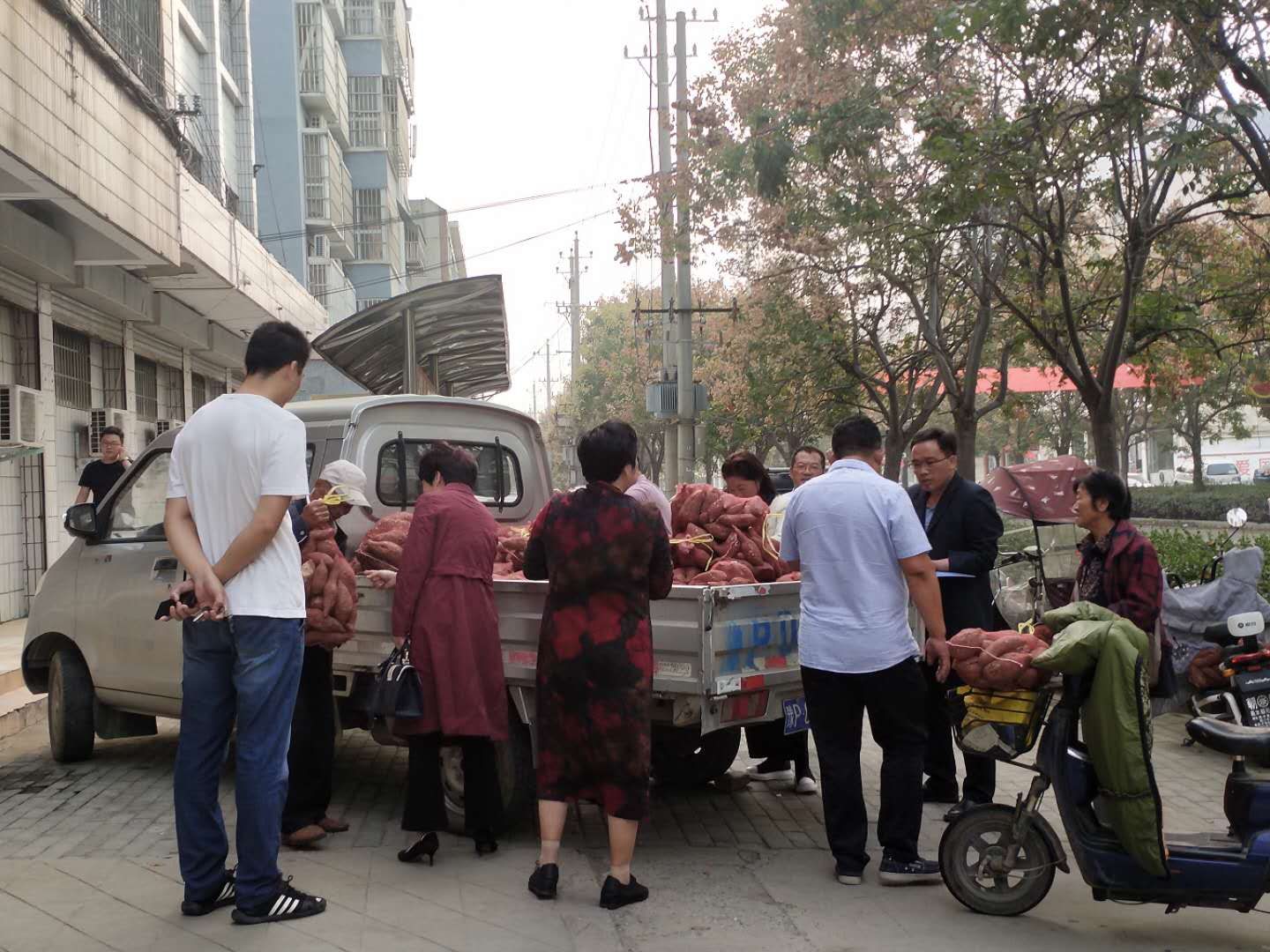 大約一個半小時,一百袋紅薯賣得僅剩下二十多袋了。尹慶華和在商水二高工作的愛人呂春靈聯(lián)系,呼吁二高老師買紅薯、獻(xiàn)愛心。在二高大門口,半個小時的時間,聞訊趕來的幾位老師把剩下的紅薯“一搶而光”。