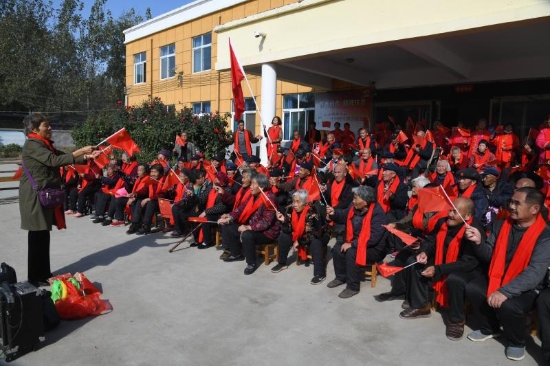 近年來,商水縣依托各鄉(xiāng)鎮(zhèn)敬老院、衛(wèi)生院認真開展醫(yī)養(yǎng)結(jié)合工作,使全縣數(shù)千特困老人集中生活、統(tǒng)一醫(yī)療,實現(xiàn)了老有所養(yǎng)、老有所醫(yī)、老有所樂,讓他們過上了幸福的晚年生活。圖為練集鎮(zhèn)醫(yī)養(yǎng)結(jié)合敬老院在組織院民唱紅歌、看演出。②18記者付永奇攝