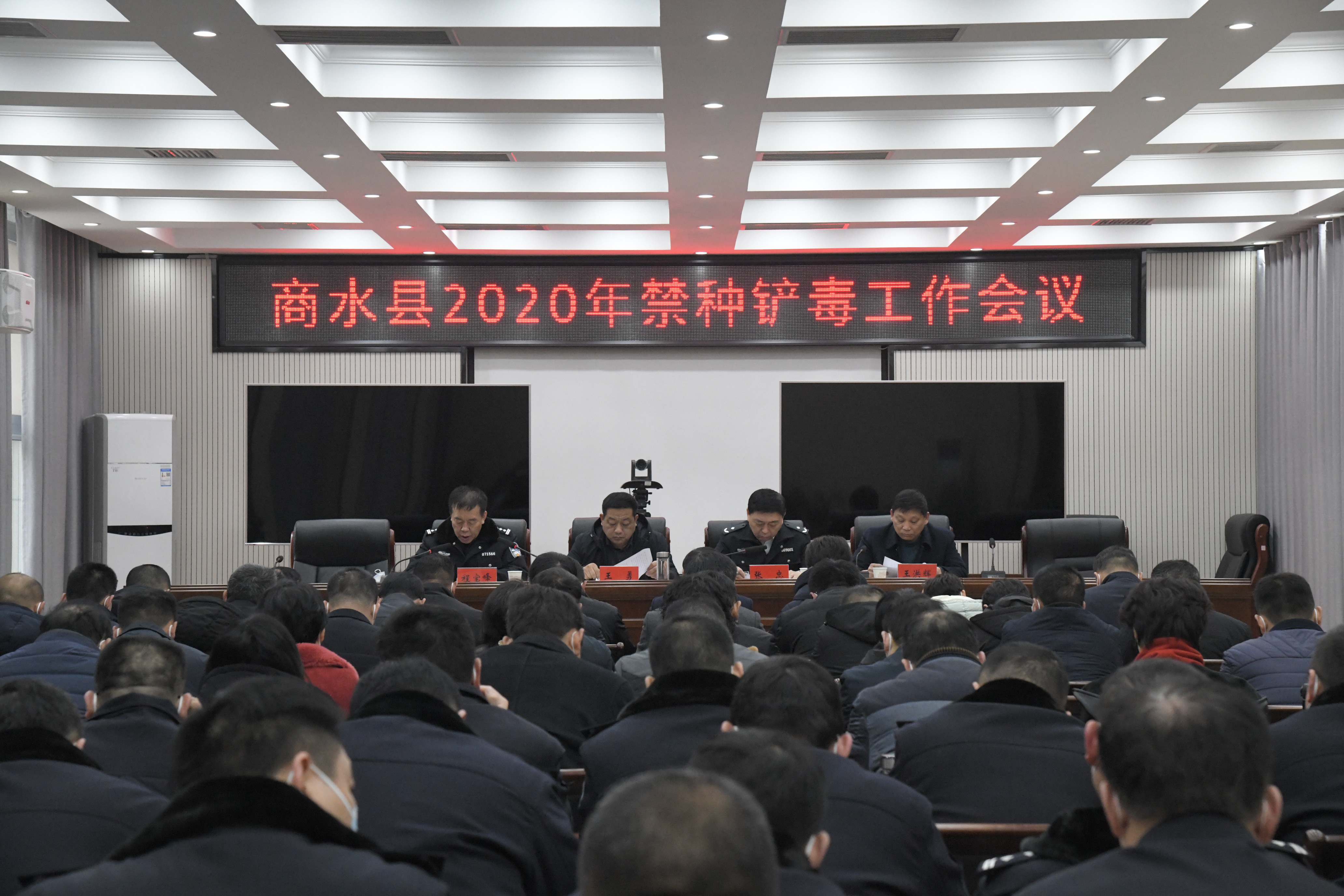 12月17日,商水縣召開禁種鏟毒工作會議??h委常委、政法委書記王勇,縣公安局黨委書記、局長張忠,縣公安局政委程寶峰等出席會議。