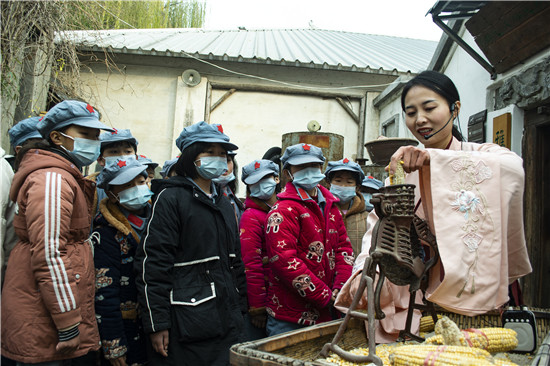 孩子們了解過去農(nóng)家玉米脫粒場(chǎng)景
