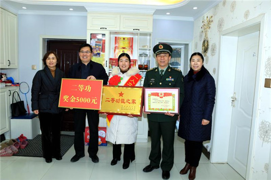 據(jù)了解,當(dāng)日有三位商水籍功臣收到喜報(bào)。高永紅,現(xiàn)任軍事科學(xué)院某研究室主任,先后榮獲軍隊(duì)科技進(jìn)步一等獎(jiǎng)、詹天佑獎(jiǎng)等獎(jiǎng)項(xiàng),在2020年度工作中取得優(yōu)異成績(jī),榮立二等功。王俊濤,上尉軍銜,系家里的獨(dú)子,現(xiàn)任某部偵察連政治指導(dǎo)員,2020年工作突出,榮立二等功。劉國(guó)席,少校軍銜,現(xiàn)任某部政治指導(dǎo)員,先后5次榮立三等功,2020年底榮立二等功。