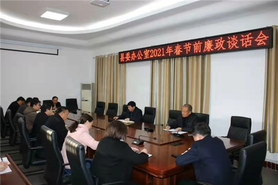 2月7日下午,商水縣委辦公室召開副科級以上干部及各室主要負(fù)責(zé)人參加的2021年春節(jié)前集體廉政談話會??h紀(jì)委監(jiān)委派駐縣委辦公室紀(jì)檢監(jiān)察組副組長何洪靈到會指導(dǎo)。會議由縣委辦公室副主任苑慶軍主持。
