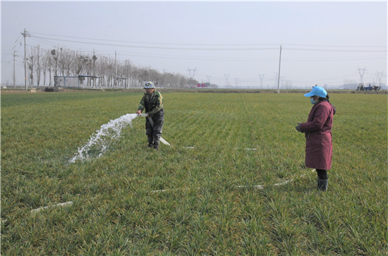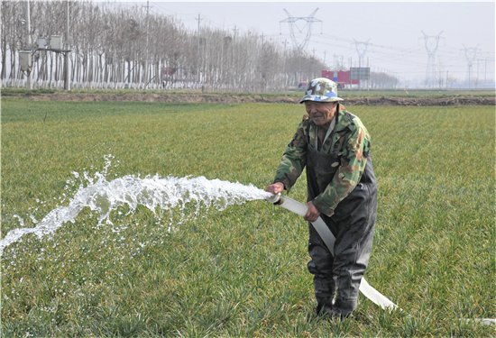 春節(jié)前夕,豫東大地旱象抬頭,全國(guó)超級(jí)產(chǎn)糧大縣商水縣農(nóng)業(yè)部門一邊聘請(qǐng)市、縣專業(yè)技術(shù)人員實(shí)地指導(dǎo),一邊動(dòng)員農(nóng)民迅速投入以抗旱澆麥、化學(xué)除草為重點(diǎn)的麥田管理工作。許多農(nóng)民匆匆買完年貨就開始下地抗旱澆麥,隨處可見農(nóng)民運(yùn)水泵、擺管子、疏溝渠的身影,萬頃麥田一派繁忙景象。