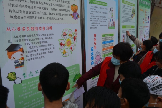 活動(dòng)現(xiàn)場(chǎng)布置了食品安全知識(shí)展板,懸掛宣傳條幅,發(fā)放了宣傳冊(cè)和彩頁,600余師生參加活動(dòng)。港區(qū)分局工作人員向師生現(xiàn)場(chǎng)講解如何識(shí)假辨假、什么是三無產(chǎn)品、進(jìn)店要進(jìn)證照齊全店、營(yíng)業(yè)執(zhí)照及食品經(jīng)營(yíng)許可證的樣式、如何辨認(rèn)保質(zhì)期、杜絕“垃圾”食品等食品安全基本知識(shí)。學(xué)生們聽得津津樂道。通過聆聽講解,進(jìn)一步增強(qiáng)了廣大師生的食品安全意識(shí)和識(shí)別常識(shí),為營(yíng)造安全放心校園環(huán)境奠定基礎(chǔ)。在食品安全展板前廣大師生看的認(rèn)真、聽得仔細(xì),市場(chǎng)監(jiān)管人員講得生動(dòng)實(shí)用。學(xué)生一致認(rèn)為,通過聆聽講解看展板,使我們加深了食品安全知識(shí)的掌握、開拓了視野,一定發(fā)揮“小手拉大手”作用,向父母、家人宣傳食品安全知識(shí),爭(zhēng)當(dāng)食品安全知識(shí)的“小喇叭”。