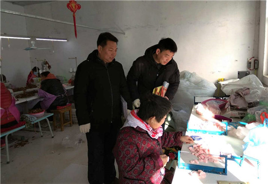 王東華了解到,本村在外務(wù)工人員多在南方從事羊毛衫加工,具有人才和技術(shù)優(yōu)勢。他鼓勵村黨支部書記黨紅濤在本村原有零星服飾加工的基礎(chǔ)上,整合資源成立輝祥服飾有限公司,擴(kuò)大生產(chǎn)規(guī)模,帶動大家致富。他還同黨紅濤一起外出考察購置新型縫盤機(jī),聘請杭州服飾設(shè)計公司做技術(shù)和銷售顧問,對接銷路。由于加工羊毛衫縫盤機(jī)占用空間不大、機(jī)器輕便,公司實(shí)行“公司+農(nóng)戶”模式,讓貧困群眾在家進(jìn)行初加工,然后送到廠房進(jìn)行拼裝,計件付酬,僅此一項(xiàng)就帶動50余名貧困群眾就業(yè),人均月收入4000元以上。按照這個模式,董村又辦起玩具加工廠等企業(yè)。他還和村“兩委”班子通過整理閑置土地,對外承包,增加村集體收入25萬余元。