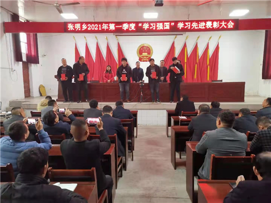 為提升黨員干部素質(zhì)和理論水平,增強(qiáng)基層黨組織的凝聚力,3月15日上午,商水縣張明鄉(xiāng)積極開(kāi)展2021年第一季度“學(xué)習(xí)強(qiáng)國(guó)”學(xué)習(xí)標(biāo)兵表彰活動(dòng)。