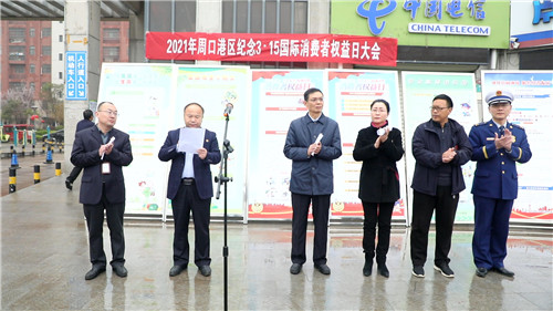 市市場監(jiān)管局二級高級主辦趙學(xué)軍,港區(qū)黨委委員、紀委書記李素芹出席活動。港區(qū)榮獲2020年度周口市“文明誠信經(jīng)營示范商戶”代表,港直相關(guān)單位、李埠口鄉(xiāng)政府負責(zé)人,港區(qū)醫(yī)院等企業(yè)組織方隊,市市場監(jiān)管局港區(qū)分局全體同志,周口日報社等新聞單位以及前來參觀的消費者們參加了紀念大會?;顒哟髸?,港區(qū)分局副局長趙珂回顧總結(jié)了2020年全區(qū)消費者權(quán)益保護工作,對2021年“3.15”活動期間的消費維權(quán)工作作了安排?! ?/p>
