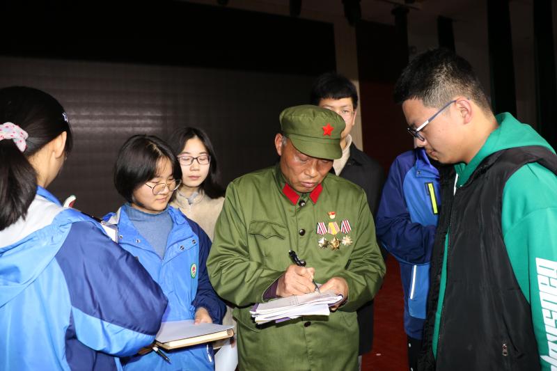 課后,學生們紛紛上前與馬紹領交流,并要求簽字、合影留念。大家表示,要倍加珍惜現(xiàn)在的和平幸福生活,努力學習,為建設社會主義強國努力奮斗。高一六班學生胡昀昕動情地說:“愿意為國家犧牲奉獻的人,才是偉大的英雄,馬老師才是我們該追的星?!?/p>
