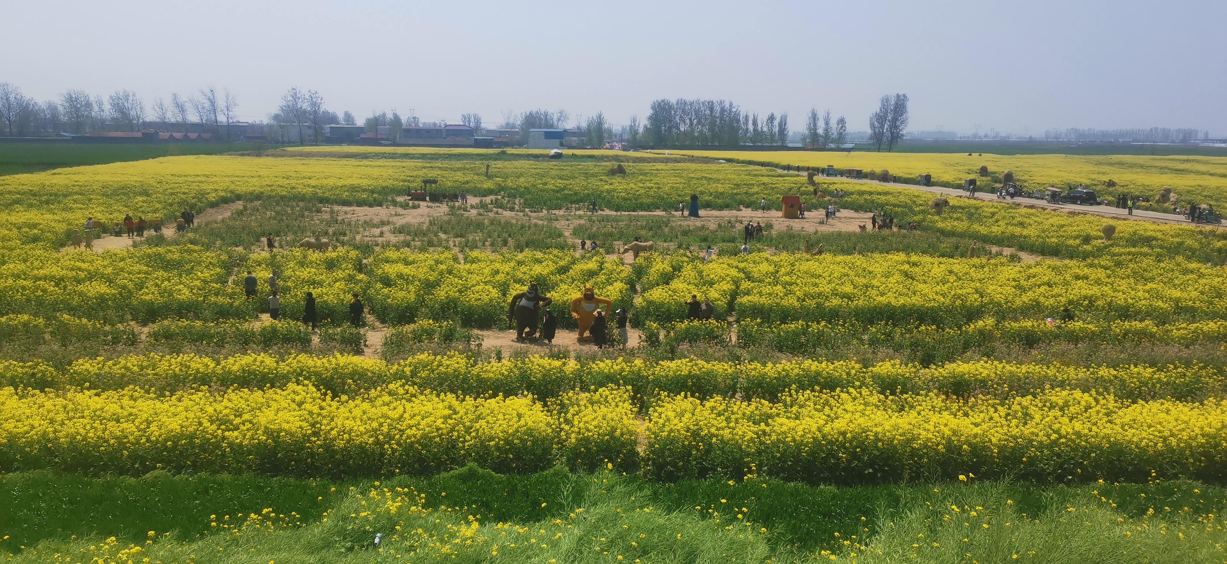 在明媚春光中,金燦燦的油菜花海含蕊吐翠,一望無(wú)邊,令人心曠神怡。伴隨著一陣滴滴聲響起,名為“福泉號(hào)”的觀光火小車載著30余名游客暢游花海,廣袤的田野里一片流金溢彩,引來(lái)車上游客開(kāi)心得把歌唱;在碧綠的沙河中,眾多游客乘坐豪華游輪穿梭沙河兩岸,切身體驗(yàn) “船在水中行,人在花中走“獨(dú)特情趣;在稻草人樂(lè)園,熊出沒(méi)、小黃人、海綿寶寶等惟妙惟肖的稻草人矗立花海中,更是成為孩子們的樂(lè)園,吸引不少孩子游玩嬉戲。