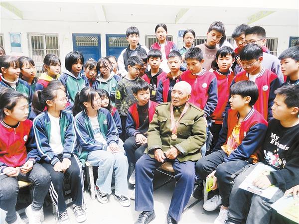 4月16日,商水縣舒莊鄉(xiāng)汾河村89歲抗美援朝老兵徐汝深,在杜店小學(xué)為學(xué)生講述革命故事。黨史學(xué)習(xí)教育開展以來,該縣成立紅色宣講團(tuán),走進(jìn)校園、社區(qū)、機(jī)關(guān)、企業(yè)開展宣講活動,讓紅色基因代代相傳。