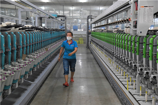 4月20日,位于商水經(jīng)濟(jì)技術(shù)開發(fā)區(qū)的周口市佳利達(dá)紡織(集團(tuán))有限公司員工正在車間察看機(jī)器運(yùn)行情況。據(jù)了解,該公司系招商引資企業(yè),現(xiàn)有職工369人,擁有10萬紗錠生產(chǎn)線,2019年以來獲得國家專利19項(xiàng),實(shí)現(xiàn)了生產(chǎn)銷售自動化、數(shù)字化、智能化、信息化,先后被評為周口工業(yè)50強(qiáng)企業(yè)、河南省制造業(yè)與互聯(lián)網(wǎng)融合發(fā)展試點(diǎn)示范企業(yè)。周口日報(bào)·周道客戶端記者 付永奇攝