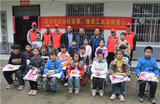 “經過我們公司老員工、村支部書記李金棋的牽線聯(lián)系,俺一行6人今天一大早驅車近200公里到這里開展‘深學黨史辦好實事、情系工友溫暖童心’活動。一方面是學黨史辦實事的需要,也是關愛農民工支持地方教育事業(yè)的需要......”中建七局下屬公司在商丘市一個項目生產部的負責人黃彥光如是說。