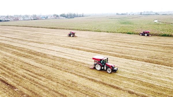 10月14日,市城鄉(xiāng)一體化示范區(qū)許灣街道孔莊村村民在田間耕作。連日陰雨暫歇,農(nóng)戶們利用晴好天氣,與時(shí)間賽跑,抓緊秋播。記者 劉俊濤 攝