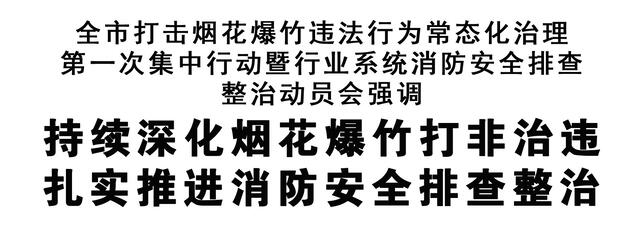 會(huì)議指出,安全重于泰山。各級各部門要準(zhǔn)確把握我市當(dāng)前煙花爆竹和消防安全的嚴(yán)峻形勢,深刻汲取事故慘痛教訓(xùn),時(shí)刻繃緊思想之弦,緊盯系統(tǒng)性風(fēng)險(xiǎn)和機(jī)制性問題,持續(xù)深化煙花爆竹打非工作,扎實(shí)推進(jìn)消防安全排查整治,最大限度防范遏制各類事故發(fā)生,全力保障人民群眾生命財(cái)產(chǎn)安全和社會(huì)大局穩(wěn)定。