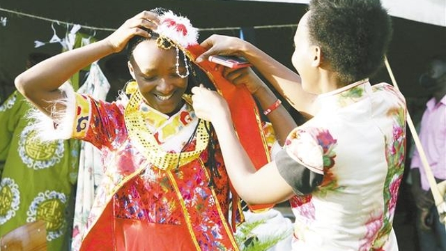 11月10日,學生在盧旺達卡永扎試穿中國服飾?!?a href="http://www.themineralsgroup.com/content/2021-11/13/content_959142.html" target="_blank" >[詳細]