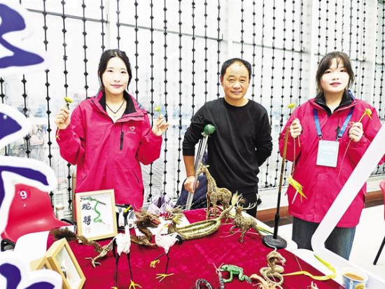 在周口市非物質文化遺產(chǎn)展示館的棕編作品展柜里:中國龍鱗爪分明,劍齒虎威風凜凜,螳螂伸足欲捕食……這些栩栩如生的作品,均出自非遺棕編技藝第三代傳承人朱洪濤之手。