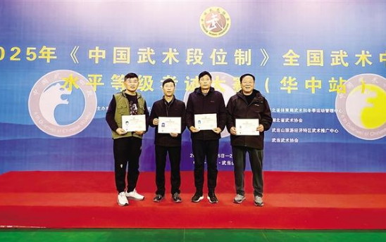 11 月 28 日,淮陽區(qū)選手王錦橋、陳百勛、段彥軍、彭中杰(從左至右)在領獎臺上合影。