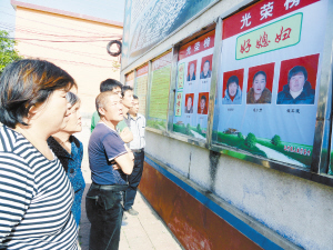 上圖  昨日上午,商水縣巴村鎮(zhèn)上城村村民正在圍觀“好媳婦”、“好婆婆”、“好孝子”光榮榜。據(jù)了解,被評(píng)為“全國(guó)文明村”、“河南省生態(tài)文明村”的上城村,已連續(xù)3年開(kāi)展“好媳婦”、“好婆婆”、“好孝子”評(píng)選活動(dòng)。(喬連軍 攝)