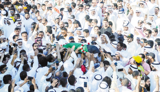 科威特民眾悼念清真寺爆炸事件遇難者 6月27日,民眾在科威特北部蘇萊伊哈特陵園參加活動,悼念伊瑪目薩迪克清真寺爆炸事件的遇難者??仆?cái)?shù)千名民眾27日在科北部蘇萊伊哈特陵園悼念伊瑪目薩迪克清真寺爆炸事件的遇難者。