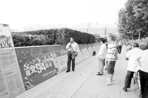 7月1日至3日,太康縣國土資源管理局組織開展建黨94周年紅色宣傳活動。圖為該局退休職工韓其功義務(wù)向行人講解毛澤東、周恩來、劉少奇等老一輩無產(chǎn)階級革命家的豐功偉績,傳播時(shí)代正能量。(王立平 封艷華 攝)