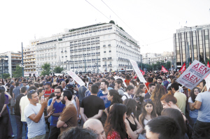 7月13日,民眾在希臘雅典參加集會,抗議財(cái)政緊縮措施。新華社發(fā)