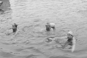 伸伸腰,扭扭腿……下水前,大家都要活動(dòng)筋骨,避免發(fā)生意外。根據(jù)分組,大家按照次序來(lái)到河邊,聽(tīng)到口令后,一個(gè)個(gè)魚(yú)躍河中。14歲的張毅來(lái)自許昌代表隊(duì),賽后他激動(dòng)地對(duì)記者說(shuō):“我很久之前就開(kāi)始接觸游泳了,但是冬泳剛剛練習(xí)了3年,參加這樣的比賽很開(kāi)心。”記者采訪發(fā)現(xiàn),冬泳愛(ài)好者比賽結(jié)束后很少關(guān)心自己的成績(jī),他們說(shuō)得最多的是“爽”。一位冬泳愛(ài)好者告訴記者,比賽成績(jī)不重要,重要的是這項(xiàng)運(yùn)動(dòng)能培養(yǎng)人的意志力以及使人保持開(kāi)朗樂(lè)觀的生活態(tài)度,這才是他所追求的。